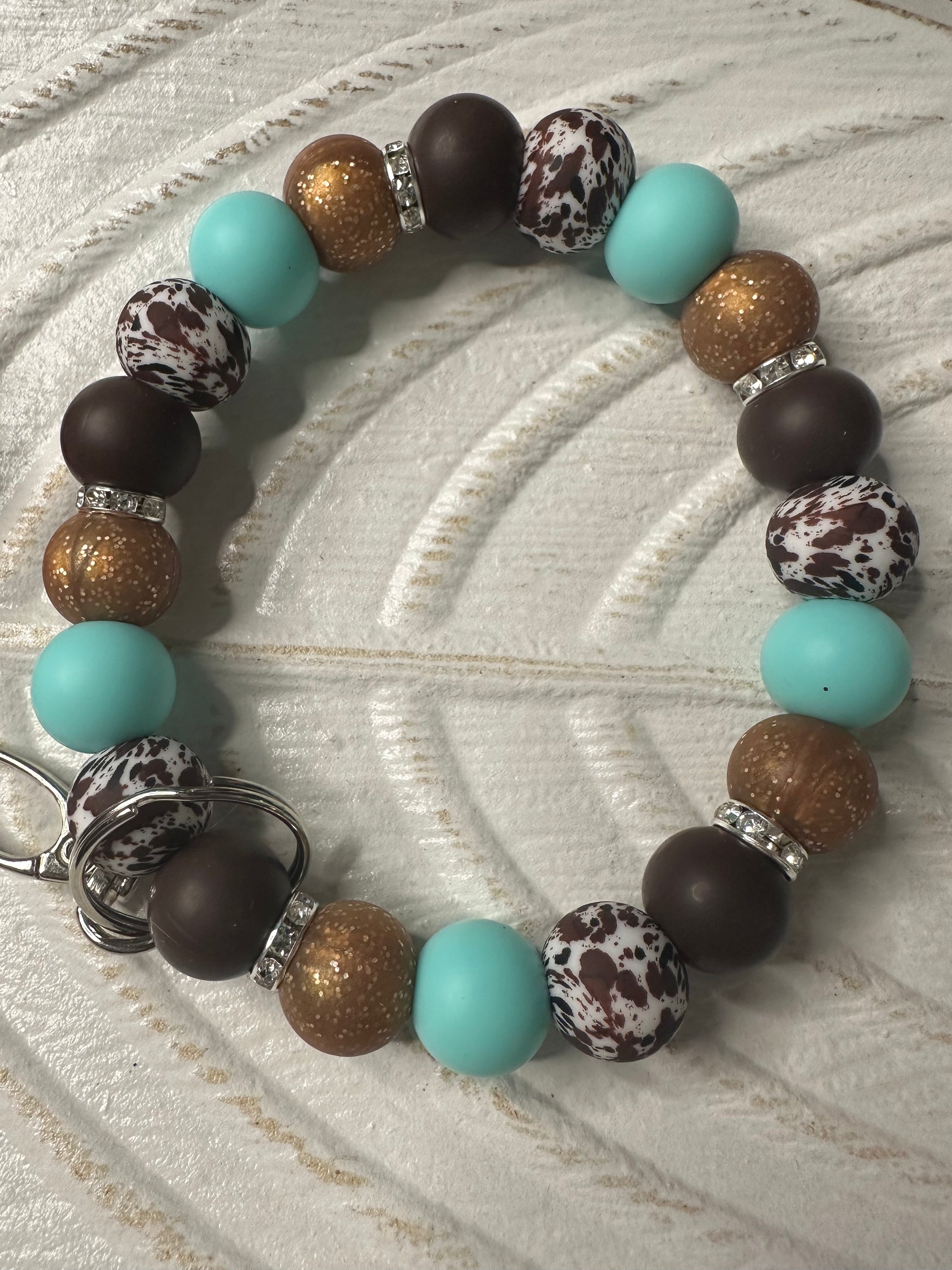 Teal and brown cow Wristlet
